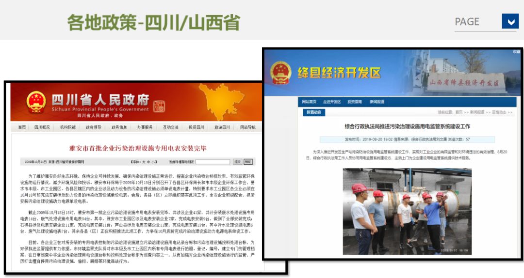 2018年6月24日公布的《中共中央國務(wù)院關(guān)于全面加強(qiáng)生態(tài)環(huán)境保護(hù)堅(jiān)決打好污染防治攻堅(jiān)戰(zhàn)的意見》提出:堅(jiān)決打贏藍(lán)天保衛(wèi)戰(zhàn),著力打好碧水保衛(wèi)戰(zhàn),扎實(shí)推進(jìn)凈土保衛(wèi)戰(zhàn)。各省市相繼出臺(tái)有關(guān)污染治理設(shè)施用電監(jiān)管平臺(tái)相關(guān)政策,要求