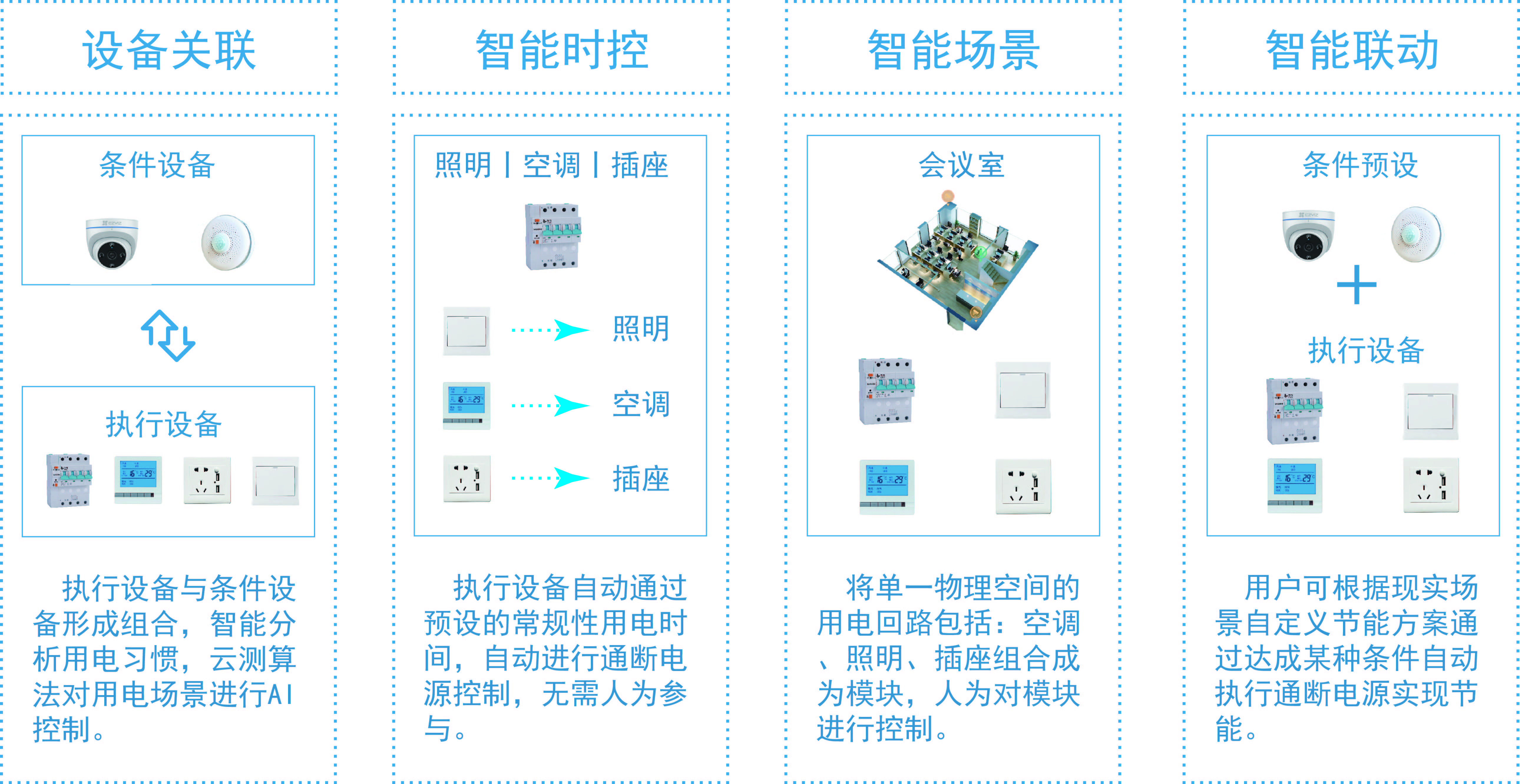 無須人工干預(yù),云平臺(tái)可預(yù)設(shè)用電習(xí)慣及特定的用電情況,還可以通過人工智能算法,感知學(xué)習(xí)當(dāng)下場景的用電習(xí)慣,通過上述多種方式搭配用電規(guī)則,實(shí)現(xiàn)用電合理管控,達(dá)到管理節(jié)能目的。