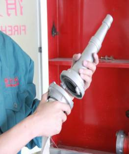 3、另一人接好水帶和閥門口: