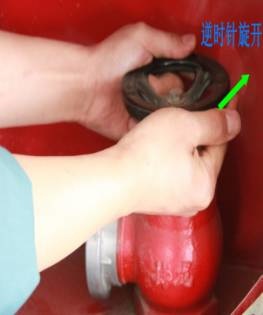 4、把消防栓手輪逆時針旋開,即可噴水滅火。