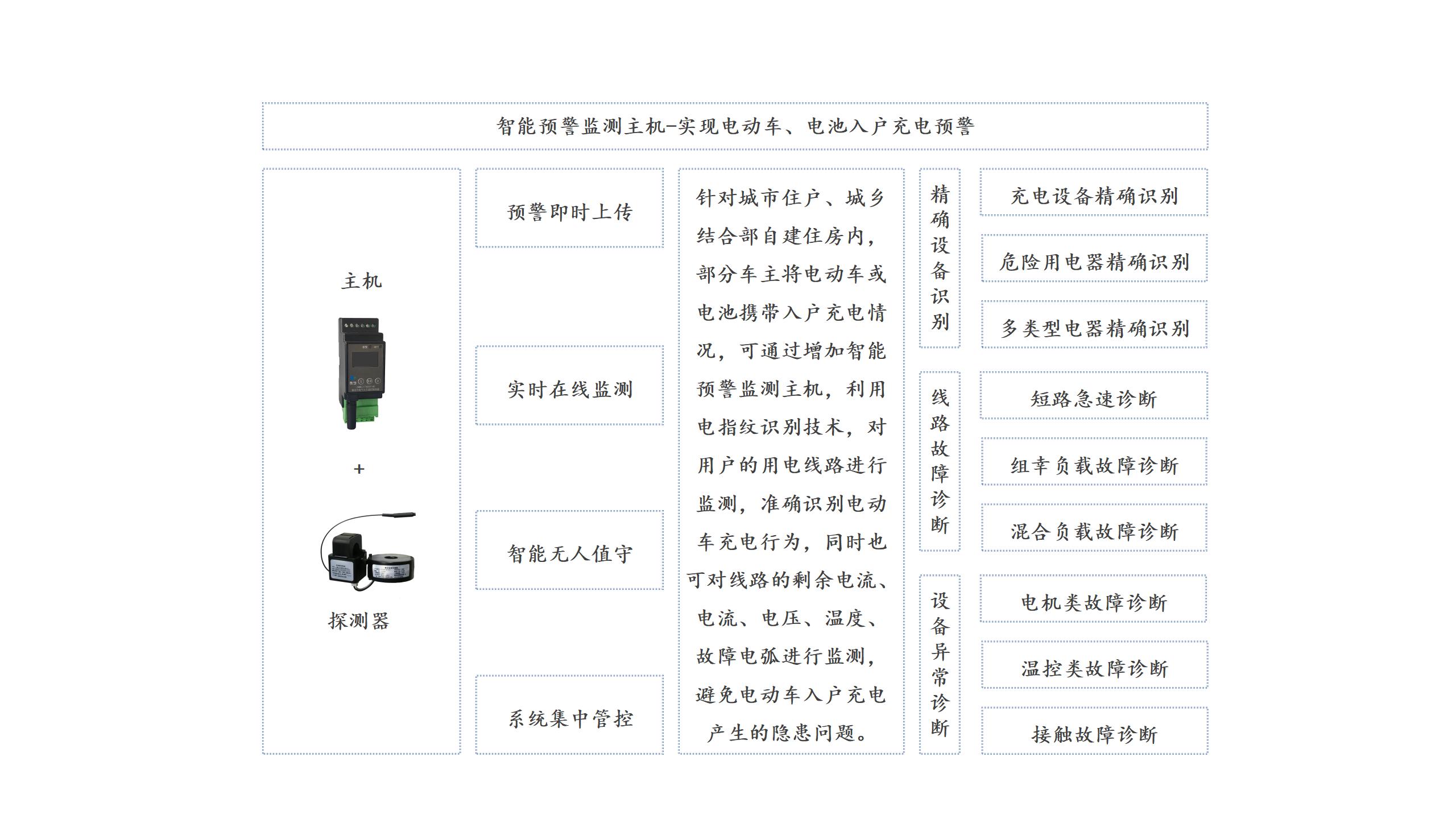 電動(dòng)車充電報(bào)警系統(tǒng)結(jié)合了智慧用電和電流指紋識(shí)別技術(shù),可以有效解決電動(dòng)車入戶充電帶來(lái)的安全隱患。相比傳統(tǒng)的安全監(jiān)管方式,該系統(tǒng)具有以下優(yōu)勢(shì):