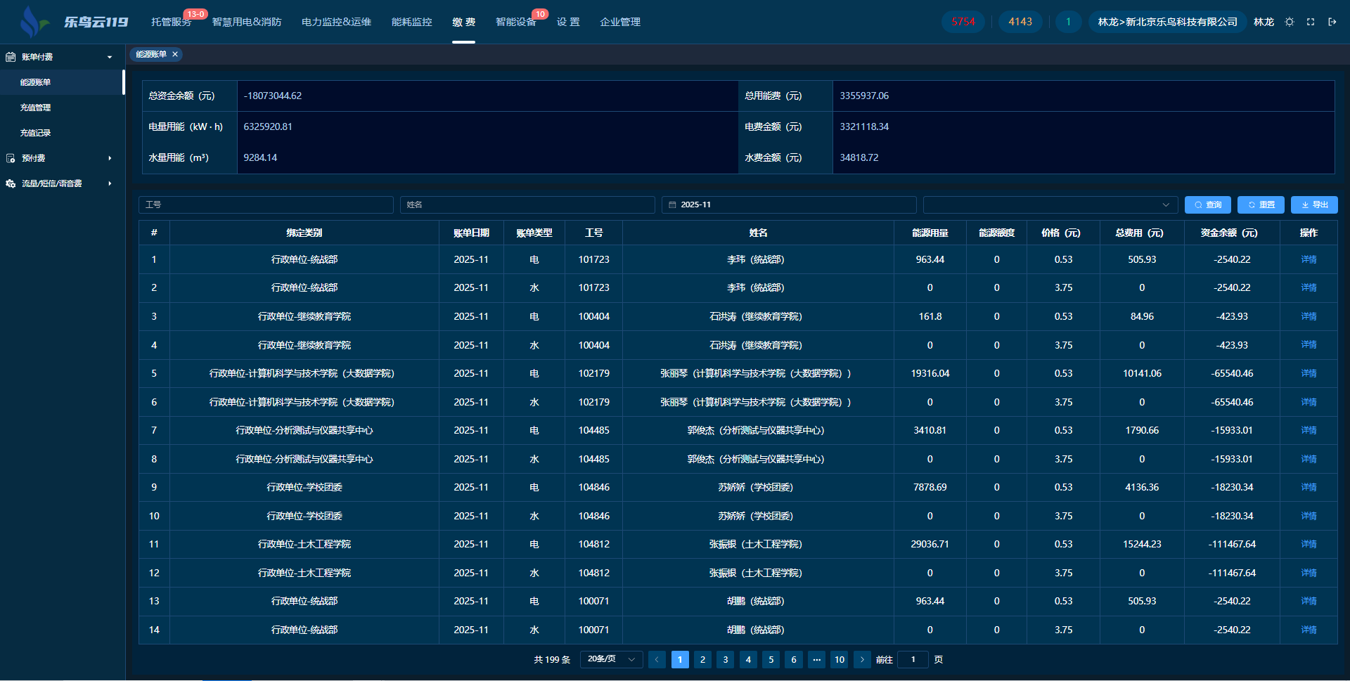 系統(tǒng)每月生成能源詳細賬單,用戶可按特定類別設備管理,精準掌握能耗。系統(tǒng)自動算總費用并實時顯示余額,用戶可查看整體及各設備賬單,實現(xiàn)透明化管理。