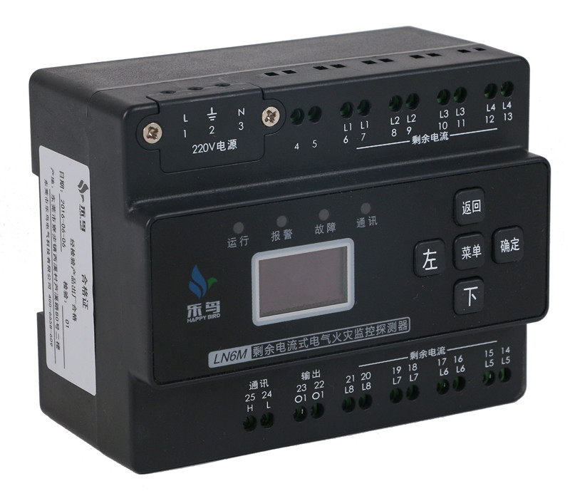 LN6M智慧用電安全傳感終端實(shí)時(shí)監(jiān)測剩余電流、電流、溫度參數(shù),超過預(yù)設(shè)值或數(shù)據(jù)變位即觸發(fā)報(bào)警;報(bào)警限值可通過按鍵及遠(yuǎn)程進(jìn)行調(diào)整;無線傳輸穩(wěn)定,網(wǎng)絡(luò)中段后自動重連;選配開關(guān)量輸入,實(shí)時(shí)監(jiān)測回路斷路器分合閘狀態(tài)和故障狀態(tài)等是對低壓配電系統(tǒng)(400V)引起的火災(zāi)、人身觸電、系統(tǒng)故障、A\B\C\N對地短路等產(chǎn)生的剩余電流以及系統(tǒng)接觸點(diǎn)溫度進(jìn)行監(jiān)控報(bào)警。剩余電流過大時(shí),會燒毀電氣設(shè)備或者產(chǎn)生熱量和火花導(dǎo)致火災(zāi),溫度過高直接可以產(chǎn)生火災(zāi)。