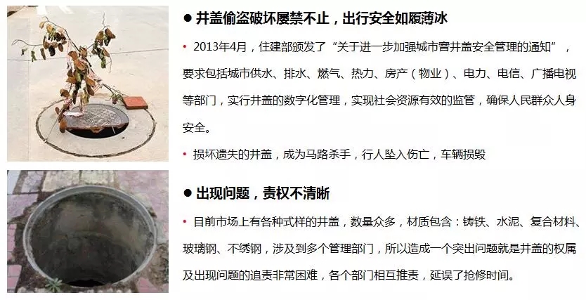 因此國(guó)家和地方政府相繼出臺(tái)政策,要求實(shí)行數(shù)字化管理。核心需求:井蓋是現(xiàn)代城市中重要的公共基礎(chǔ)設(shè)施,實(shí)現(xiàn)對(duì)城市龐大數(shù)量井蓋智能管理亟待進(jìn)行!