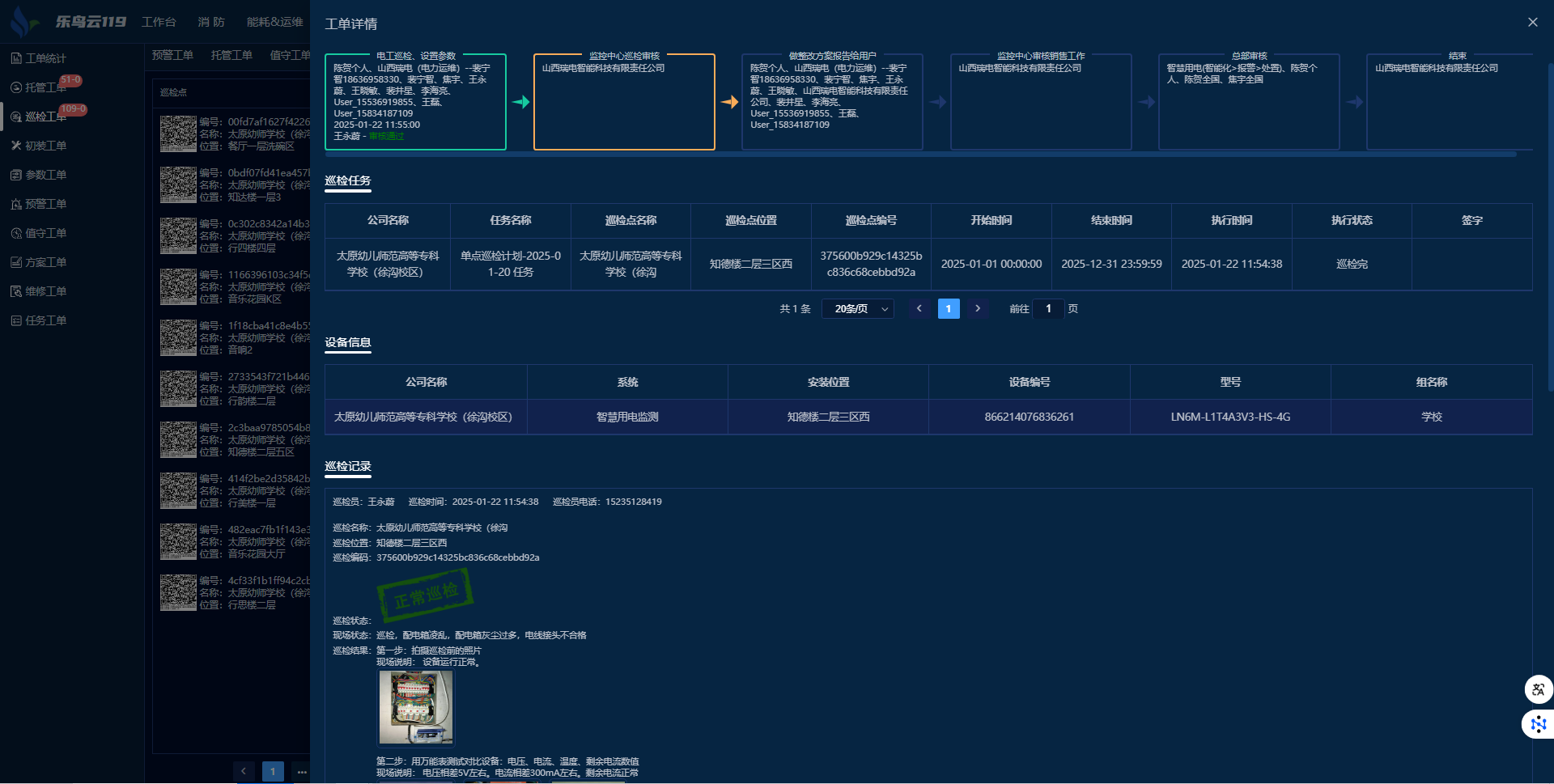 從報(bào)警/巡檢到電工處理數(shù)智化,每一步操作數(shù)字化呈現(xiàn)。