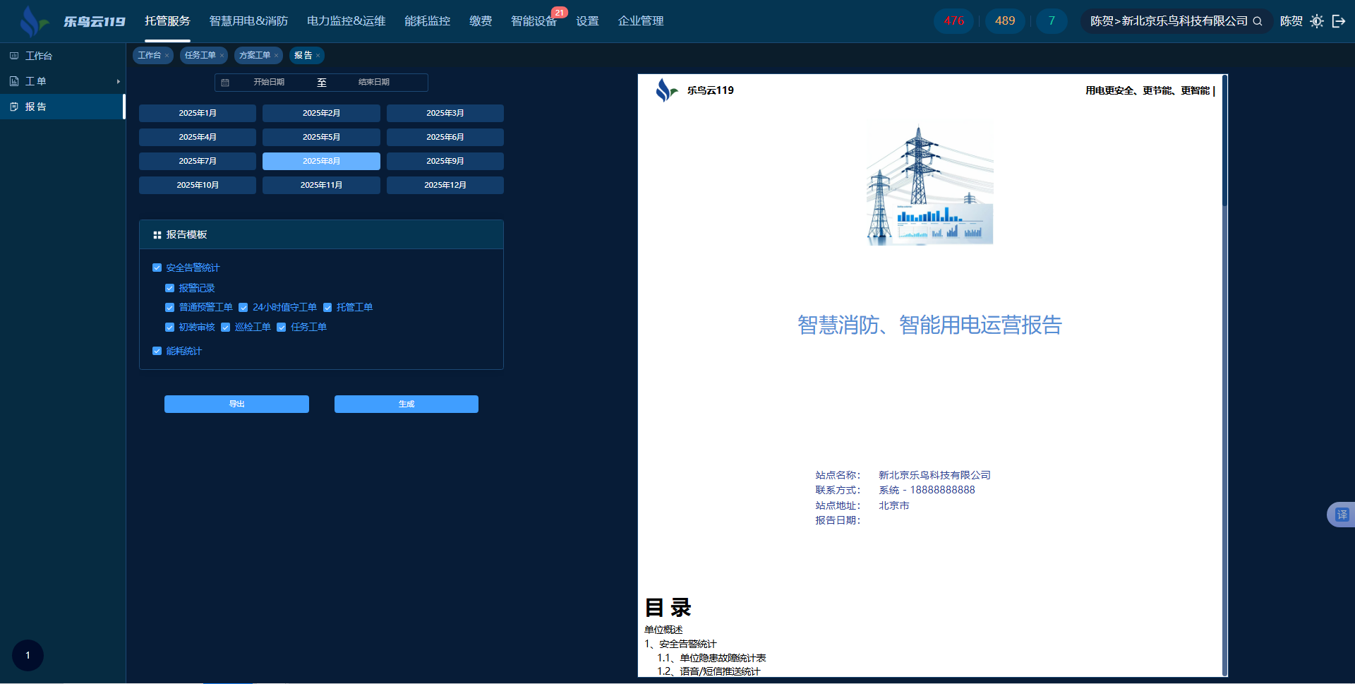 可按照自然月或者指定時(shí)間自動(dòng)生成報(bào)告,報(bào)告包含安全告警統(tǒng)計(jì)、報(bào)警記錄、工單內(nèi)容等,生成內(nèi)容可自行選擇,可導(dǎo)出至本地進(jìn)行查閱。